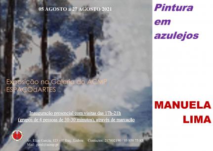 MANUELA LIMA, médica e afirmada ceramista, colaboradora da Galeria ESPAÇOdARTES do ACMP desde 2006, em continuação de uma carreira plena de actividade pictórica, nomeadamente “com os seus azulejos”, de apelativas temáticas e intensos cromatismos, sempre com grande aceitação entre colegas e público em geral, volta agora a expor