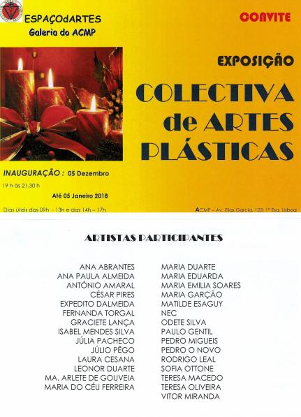 COLECTIVA DE ARTES PLÁSTICAS 2017 Convite Colectiva de Artes Plásticas 2017 Inauguração 5 Dezembro, das 19 às 21H30 Até 5 de Janeiro de 2018