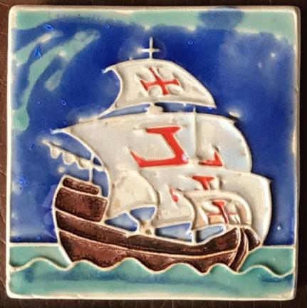 GALERIA VIRTUAL ACMP – ARLINDA FROTA 2ª EXPOSIÇÃO COLECTIVA VIRTUAL DO ACMP Apresentação do 11º trabalho: ARLINDA FROTA (médica) Sem título, azulejo da série “Caravelas”, barro fresco moldado em placa e sobre molde de gesso, com vidrado policromado, 12x12cm.