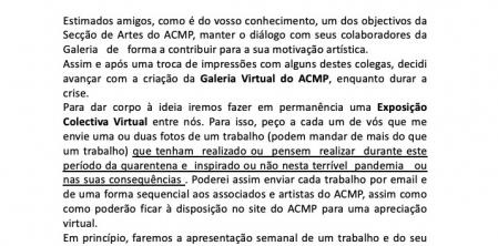 Caros colegas e amigos, fica inaugurada a 1ª Exposição Coletiva da Galeria Virtual do ACMP com a apresentação do trabalho da artista: