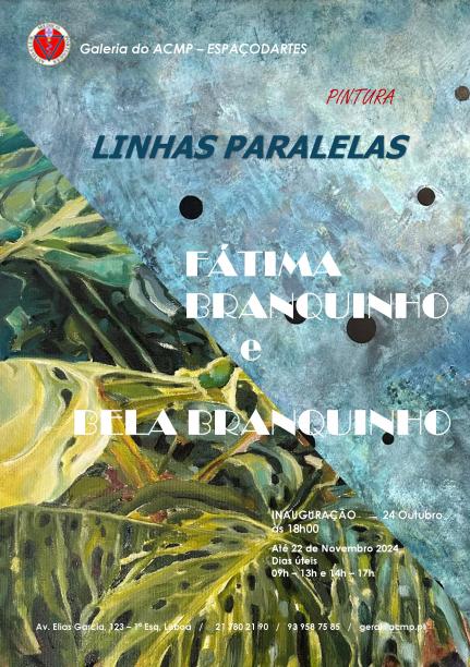 Na próxima exposição do ACMP, "Linhas Paralelas", poderemos apreciar alguns dos recentes trabalhos das pintoras, FÁTIMA BRANQUINHO e BELA BRANQUINHO, que, sendo irmãs, juntam nesta parceria artística afirmações estéticas bem diferenciadas e revelam afirmados e autónomos percursos criativos. Uma atrativa exposição a visitar no ESPAÇOdARTES, Galeria do Auto Clube Medico Português em Lisboa, a partir do dia 24 de Outubro.
